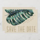 Mod Monstera Leaf Green and Tan Wedding Save The Date