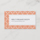 A poppy, mod orange clover pattern fills the background of this unique business card template for an eye-catching design. A white box outlined in light grey "wraps around" the edge of this card for added uniqueness. © 1201AM DESIGNS