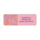 Mod pink purple and yellow geometric design labels.