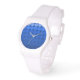Mod Pop Dots in gradient circle tones of denim, electric, cobalt and indigo blue, on a sporty white watch.