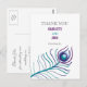 Mod purple, teal blue peacock wedding Thank You Postcards. Matching products also available.