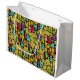 Modern, multicolored and bright, this design evokes mid-century aesthetics.