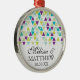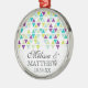 COLOR PALETTE: purple, aqua, ocean, teal, turquoise blue with sage, mint and lime green on a white background. DESIGN COLLECTION: This is a matching Wedding Ornament to match the wedding invitation set of the same name. This modern geometrical pattern design has a cascade of triangles of various hues and colours along with a banner heading and a subtle white and grey ghost of the the triangles running down the page. The text is set in a typographic, typography graphic art font layout. Simple, clean, crisp and elegant for the trendy, chic out of box, anything but ordinary couple. Your text is easily personalized using the easy template fields provided. Several colour combinations are available, contact us if there is a colour palette you would like us to create for you.
