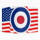 A vibrant USA flag roundel design graphic print. Good for a patriotic occasion, sports, or for a gift with a retro ska mod look.