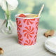 This fun and festive holiday paper cup features a red and pink pinwheel background. This design coordinates with our Mod Wavy Groovy holiday collection.