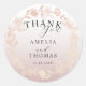 Add a beautiful finishing touch to your wedding favors with this elegant round wedding thank you sticker. Featuring a delicate floral wreath in soft rose gold tones, this design creates a luxurious and romantic feel. The graceful typography and subtle blush gradient background complement the botanical wreath perfectly, making it ideal for sealing favor bags, gift boxes, or envelopes. Personalize with your names and wedding date for a stylish keepsake that thanks your guests for celebrating your special day.