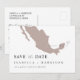 Ce modèle de save the date de mariage à imprimer DIY présente une carte de Mexique rose et une police manuscrite audacieuse. Utilisez ce modèle pour modifier les polices, la couleur de police et la couleur d'arrière-plan pour répondre aux besoins de votre événement. Déplacez le cœur et la destination pour mettre en évidence l'emplacement de votre mariage.