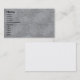 Carte de visite, taille : États-Unis : 8,9 cm x 5,1 cm, papier : Standard Semi-brillant, coins : Carré