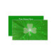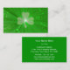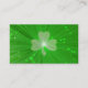 Conception moderne avec "briller, miroitant" shamrock vert et blanc sur un arrière - plan vert "rougeoyant". Modèle de carte de visite avec une conception personnalisable pour que vous personnalisiez avec votre propres texte, images et idées. Veuillez noter que c'est une image imprimée créée utilisant les photographies originales et les techniques numériques, il ne brille pas ou ne contient pas de vraies étincelles.