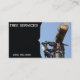 Modèle de carte de visite Tree Service. Service paysager, abattage des arbres photo carte de visite. Photo d'un ouvrier abattant un arbre. Customisez votre texte et plus en ligne.