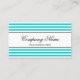Modèle moderne de carte de visite rayée chic. Carte de visite bleu turquoise à rayures motif design pour entreprise ou bureau. Modèle élégant avec texte de script élégant. Visage professionnel avec texte personnalisable et couleurs arrière - plans.