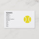 Modèle de carte de visite de tennis. Carte d'entreprise personnalisée pour coach, joueur, formateur, instructeur, assistant, conseiller, enseignant, etc. Logo de balle de tennis jaune.