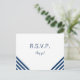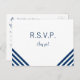 Modèle carte postale RSVP de mariage mignon avec des rayures bleu marine à l'avant et ancre à l'arrière.