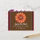 Un modèle de carte postale "Save the Date" avec des tournesols. Il s'agit d'une illustration d'un tournesol sur fond rouge et or qui vous permet de personnaliser la couleur et le texte.
