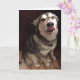 Cette couverture montre une photo d'un Malamute d'Alaska assis avec la langue glissant sur son nez. Personnalisez le texte modèle selon vos besoins ou supprimez le texte pour laisser de la place pour une note manuscrite. Envoyez cette carte mignonne pour faire savoir à quelqu'un que vous pensez à lui. Photo ©Patricia AZ Phillips.