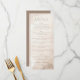 Ce menu de mariage élégant présente une mise en page orientée verticalement avec un fond aquarelle beige doux, créant une atmosphère rustique mais sophistiquée. Le design utilise une palette de tons terre assourdis et une typographie serif pour transmettre la formalité, avec des titres de section dans un brun légèrement plus foncé pour une hiérarchie visuelle. Chaque plat est listé clairement, avec des noms en italique ajoutant une touche d'élégance. Des espaces personnalisables permettent une personnalisation pour les noms et les dates, ce qui fait de ce modèle un choix parfait pour les événements formels. L'ambiance générale est discrète et raffinée, idéale pour les couples recherchant une esthétique classique et intemporelle.