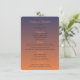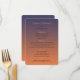 Ce menu de coucher de soleil crée une atmosphère chaleureuse et agréable pour la soirée et est parfait pour votre réception ou dîner. Il comporte une belle œuvre d'art orange et bleue avec de petites étoiles. Il existe également des modèles pour quatre entrées, quatre plats principaux, quatre desserts et plusieurs boissons prêts pour votre sélection de menu. Ceux-ci sont dans une police claire et facile à lire.