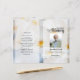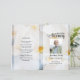 Modèle de programme de funérailles beau et professionnel avec fond floral blanc, facile à éditer et à imprimer.