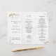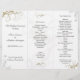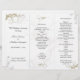 Modèles de programme de mariage avec des volutes dorées et feuillues. Programme de cérémonie triptyque avec un design floral graphique gris et or sur tout le fond. **Le verso n'a pas d'images ou d'impression.