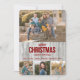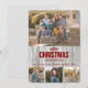 Ce modèle de carte de Noël plate avec photo met vos photographies au centre de la scène, la photo du haut étant plus grande et les trois photos du bas étant des cultures carrées. Les photographies sont encadrées avec un cadre en faux bois gris clair rustique. Au centre, un texte rouge foncé stylisé dit "JOYEUX NOËL & BONNE ANNÉE". Votre signature personnalisée est en dessous du texte de vœux. Le dos de la carte est d'un gris clair uni assorti. *Crédit photo : Photographie © Storytree Studios, Stanford, CA.