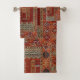 Design de tapis oriental en orange - une image antique est imprimée sur cet article - illustration d'un livre antique" "Tapis orientaux, antique et moderne" (1922) - il a été édité et appliqué sur cette serviette de bain set par Alma Wad - "modèles nomades prévalent dans toute l'Anatolie. Les crochets latéraux réciproques forment l'arrière - plan du champ central, sur lequel sont trois panneaux dressés contenant des disques octogonaux; et les crochets latéraux entourant les lozengs et formant ce qui pouvait à l'origine être destiné à représenter l'arbre de vie apparaissent presque aussi bien à la frontière. Il y a aussi des peignes, des noeuds de destin et d'innombrables formes de S. Le panneau était assis les extrémités supérieure et inférieure du champ et les Vandykes réciproques sont les plus suggestifs des Ladiks, mais à la place des grenades aux extrémités des tiges droites sont de petits carrés contrôlés. Les Bergamos avec de tels motifs sont maintenant rarement vus. " description du motif détaillé du livre mentionné ci-dessus.