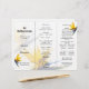 Modèle du programme de mariage Bird-of-paradise. Tri-pli, image et texte d'un côté, doit être plié en tiers - en accordéon - après achat. Les fleurs tropicales font partie de l'arrière - plan avec des images plus petites le long des côtés. Parfait pour un mariage d'été, une fête à thème tropical et une cérémonie hawaïenne.