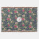 Couverture de lancer personnalisée : motif lisse et frais composé de fleurs d'hibiscus rouges et de feuilles sur arrière - plan foncé. Monogramme personnalisé inclus sur forme ronde blanche.