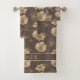 Chic Boho Gold Foil Modèle Floral Serviette de bain Set avec un romantique motif floral de feuille d'or sur un arrière - plan chocolat chaud. Ajoutez votre nom ou votre monogramme pour un design personnalisé et magnifique. Parfait pour votre hippie boho esthétique. Veuillez nous contacter à cedarandstring@gmail.com si vous avez besoin d'aide pour la conception ou les produits correspondants.