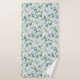 Belle serviette de bain à motifs floraux rose blanche posée sur un arrière - plan blanc aux feuilles vert clair.