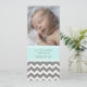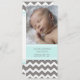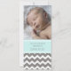 Nouveau bébé garçon cartes photos personnalisés faire-part de naissance dans adorable et élégant pastel bleu turquoise, gris et blanc amusant et moderne chevron zigzags motif, entièrement personnalisable avec la photo et les détails de naissance de votre bébé, une excellente façon de partager l'heureuse nouvelle de la naissance de votre fils avec des amis et la famille.