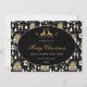 Jolie carte de vacances en noir, blanc et or avec un motif hivernal de rennes, ours polaires, écureuils, maisons et arbres. Une belle police script est utilisée pour ajouter un look plus festif à cette carte de vœux. Personnalisez facilement cette carte de vacances sans photo en ligne.