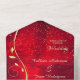 Ce joli faire-part de mariage de toute saison avec carte RSVP déchiré dans les tons or et rouge vif donnera un sens de l'élégance à votre mariage! A l'intérieur, un gracieux tourbillon d'or orné de quelques feuilles, et une subtile couche de confettis dorés pour ajouter un peu de scintillement. Votre texte mariage est en or pâle à droite de l'image tourbée de la feuille. Tout est placé sur un arrière - plan à dégradé rouge étonnant qui semble presque brillant. La partie inférieure de déchirure RSVP a l'image tourbillonnante continue, mais est blanche pour rendre facile à votre répondant de marquer. Si vous n'avez pas besoin d'un champ de texte, videz-le, et si vous avez besoin d'aide pour organiser un autre texte, veuillez nous contacter. Nous sommes toujours heureux d'aider. Si vous avez une réception sous forme de buffet, nous pouvons travailler avec vous pour reconcevoir la partie RSVP, alors n'hésitez pas à demander ! Un bonus supplémentaire et une touche personnelle est votre propre photo sur le rabat arrière.
