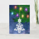 Ce design vertical présente une photo d'un ornement d'arbre de Noël blanc orné et des lumières de Noël millésimées colorées. Personnalisez le message d'accueil intérieur ou supprimez le texte d'un blanc à l'intérieur pour une note manuscrite.
