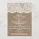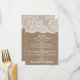 La collection burlap & dentelle est un design étonnant avec un bel arrière - plan rustique effet burlap avec un habillage romantique vintage effet dentelle blanche. Ces menus peuvent être personnalisés pour votre occasion spéciale et rendraient le menu parfait modèle pour tout mariage rustique, douche nuptiale, fête de fiançailles, fête d'anniversaire et bien plus encore. *Veuillez noter que Zazzle ne vend que des produits imprimés, de sorte que ces cartes de table n'ont pas de matériel réel pour le burlap ou la dentelle.