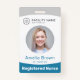 Modern personalized photo id badges for employees, highlights the color of job title, customize the employee name and photo, also the company logo and name. On the back, you can edit more information like company name, address and phone number, also add or remove barcode as you wish.