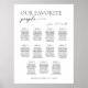 Modern Script Wedding Seating Plan. Our Favourite People sign. Personalized Simple Minimalist Seating Chart for 110 guests (11 tables). Just click the customize further link, shown under the text personalization area on the right, and choose your custom colour background. This sign poster template makes it fast and easy to create stunning additions to your wedding decor. Signs can be enlarged, there are many sizes to choose from, as well as options for custom framing and matting.