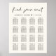 Simple and modern light cream downloadable wedding seating chart poster for up to 16 tables featuring "find your seat" in a chic script and your names and wedding date joined together by a heart. Select the digital download option to edit with last minute changes and print locally.