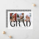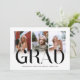 This modern design template features three graduate's photo on the front. You can add your name, school, graduation year or other details if you like. The back of the card is a matching light grey with hand drawn white stars, but you have an option to change it to better match your photo, just click on "Customize further".