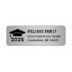 Le design étiquette de adresse personnalisé moderne comprend un casquette gris noir avec goût, année de classe, texte d'adresse de retour et argent brillant numériquement arrière - plan imprimé qui peut être customisé pour correspondre à n'importe quelle couleur d'école ou d'invitation.