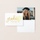 Stylish gold foil graduation class of 2026 thank you note cards feature a brush lettered script "Graduate" design with custom text that can be personalized with the grad's name and class year. Further customize with a senior photo or graduation party photo on the inside (top flap) of the card.