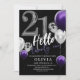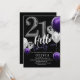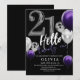 Modern 21st Birthday Black Silver Purple Balloons Invitation