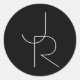Modern 2 Overlapping Initials | White on Black Classic Round Sticker