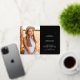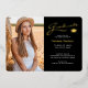 This double sided 2 photo stylish graduation announcement or thank you card with real gold foil, features modern text fused with elegant calligraphy script in gold foil and white on regal black. Photos are one on the front and one on the back, perfect for framing. The background can be easily customized to a colour of your choice. To see more items like this, visit my store here at "www.Zazzle.com/LakeViewCardCo". Thanks