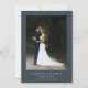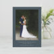 Make your wedding unforgettable with this two photo funny dinosaur-themed thank you card, featuring a whimsical T-Rex bride and groom set on a charcoal grey background, this unique design combines playful dinosaur art with modern elegant wedding style perfect for couples who want to say thank you in a fun and unforgettable way.