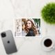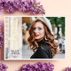 On the front, there's a full-bleed portrait with a fashionable modern GRAD real foil typography standing over a vertical sheer white overlay band, as well as the graduate's name and class year. The reverse of the card may be customized with a second photo, the names of the graduate's parents, and information about the graduation ceremony.