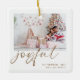 Modern 2 Photo Joyful Gold Script Christmas Ceramic Ornament