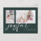 Modern 2 Photo Joyful Script Christmas Green Holiday Postcard