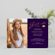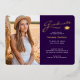 This double sided 2 photo stylish graduation announcement or thank you card with real gold foil, features modern text fused with elegant calligraphy script in gold foil and white on regal purple. Photos are one on the front and one on the back, perfect for framing. The background can be easily customized to a colour of your choice. To see more items like this, visit my store here at "www.Zazzle.com/LakeViewCardCo". Thanks