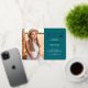 This double sided 2 photo stylish graduation announcement or thank you card with real gold foil, features modern text fused with elegant calligraphy script in gold foil and white on teal. Photos are one on the front and one on the back, perfect for framing. The background can be easily customized to a colour of your choice. To see more items like this, visit my store here at "www.Zazzle.com/LakeViewCardCo". Thanks