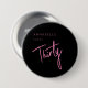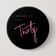 Custom 30th birthday black button with pink text perfect for thirtieth birthday party celebrations. Customize with your own name. Colours can be edited in the design tool. Please use the message me button below for help with further customization and special requests. © Zoe Chapman Design